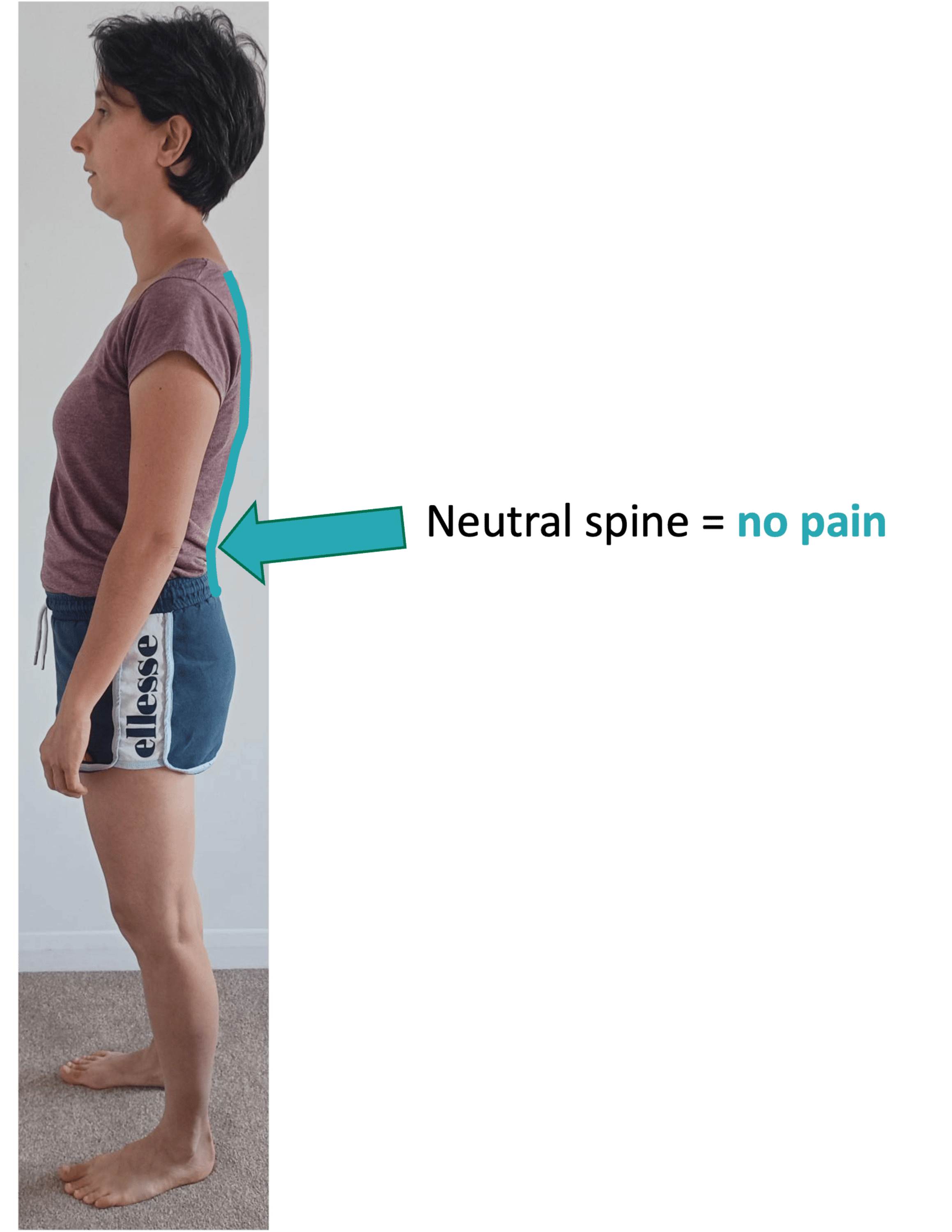 Notice how the lower back curve has reduced significantly and the forward tilted pelvis too. This allows the spine to sit more comfortably and the pressure on the lower back is reduced and the pain has gone.