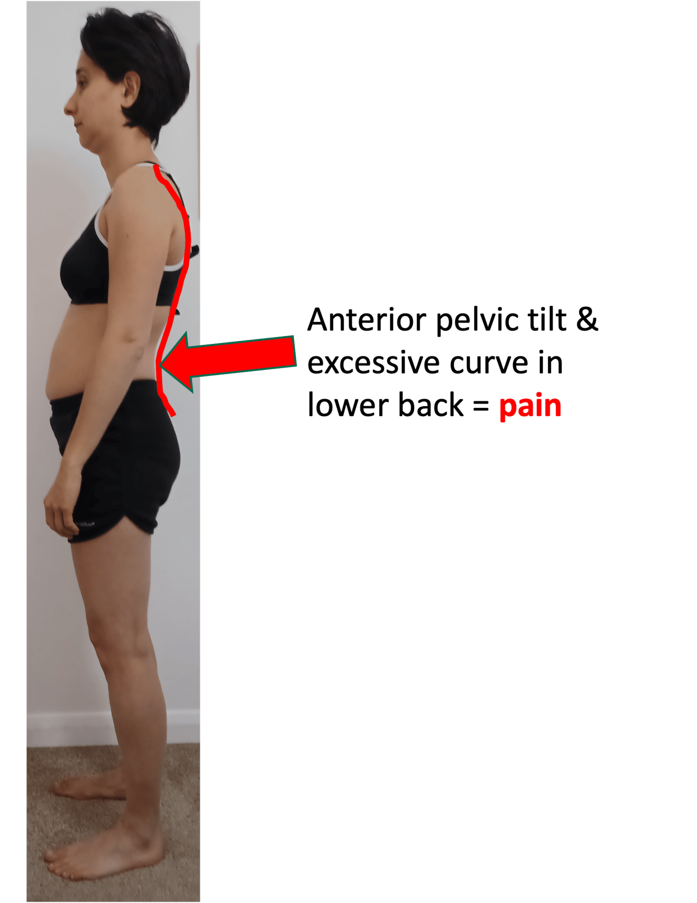 Can you see the huge curve in my lower back? This was caused by my pelvis sitting in a forward tilted position. This caused extra pressure, strain and pain in my lower back